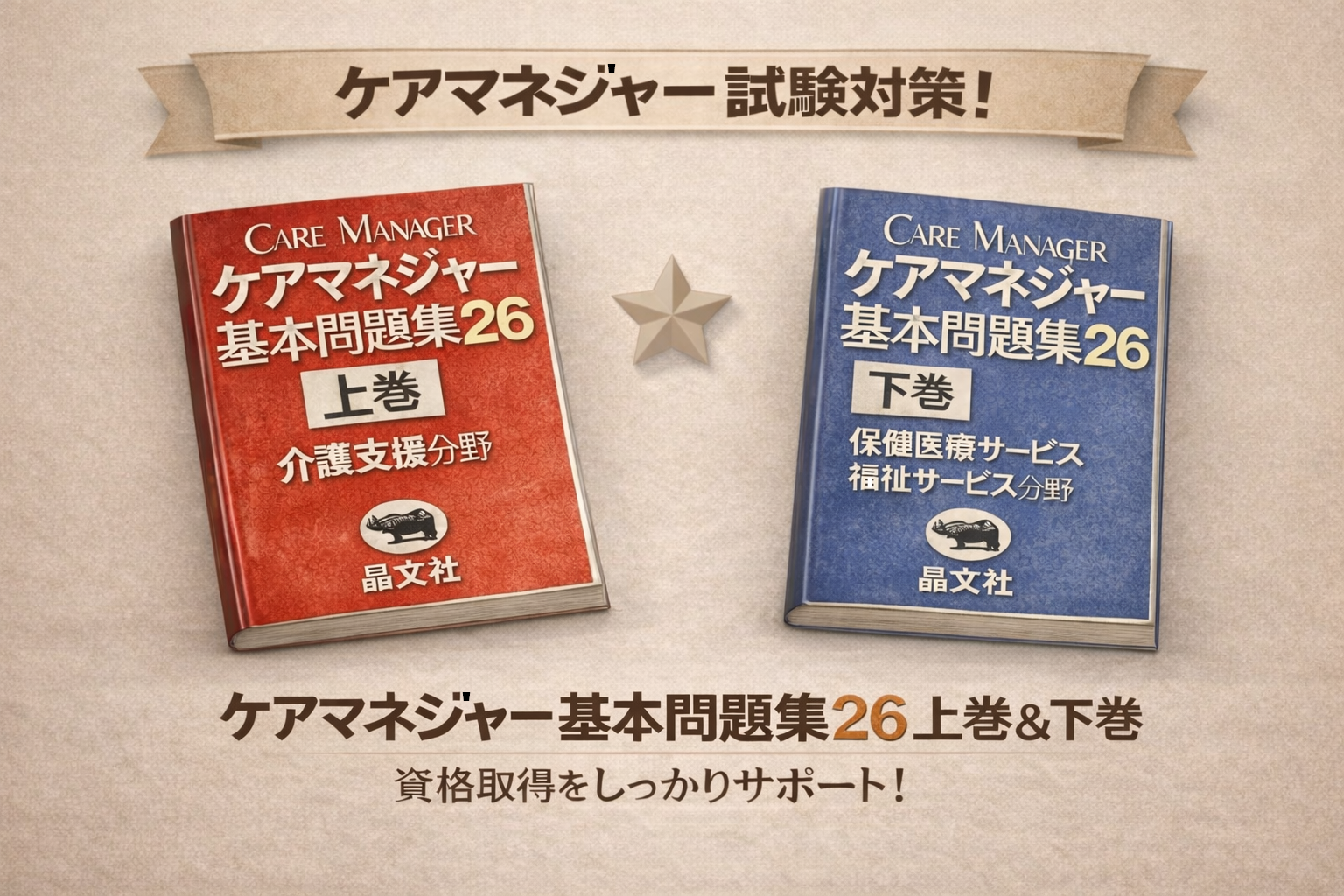 【ケアマネ編集長より】本サイトにアクセスいただき、ありがとうございます。みなさまは近いうちにケアマネ試験の受験を検討されていることと思います。少し長くなりますが、晶文社『ケアマネジャー基本問題集』について紹介させてください(読了まで3分ほどです)。申し遅れました。私は晶文社のケアマネ編集長・川崎と申します。